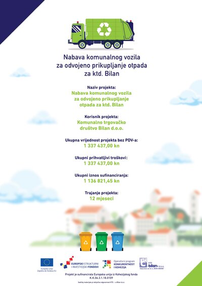 Nabava komunalnog vozila za odvojeno prikupljanje otpada za ktd Bilan